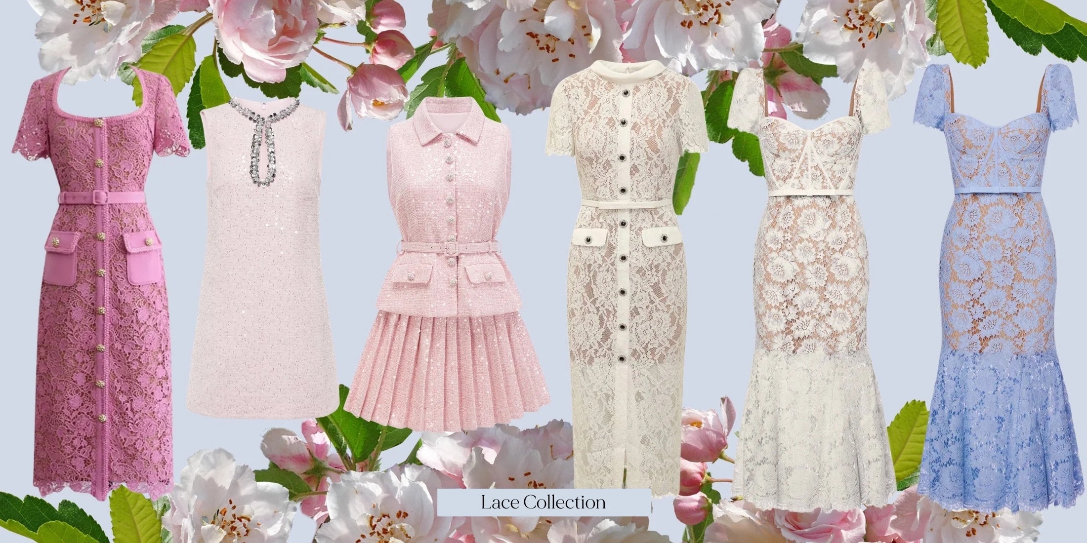 Elegant Floral Lace Fitted Dress with Button Detail and Scalloped Hem - Blush Pink Sale price$154.99 Regular price$259.99